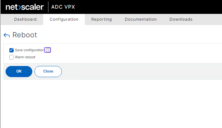Installation Part 3: Reboot the NetScaler