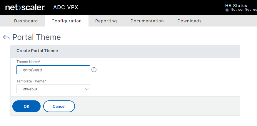 Enter a Theme Name, e.g. VeroGuard, ensure RfWebUI is selected from the drop-down as the Template Theme and click the OK button.