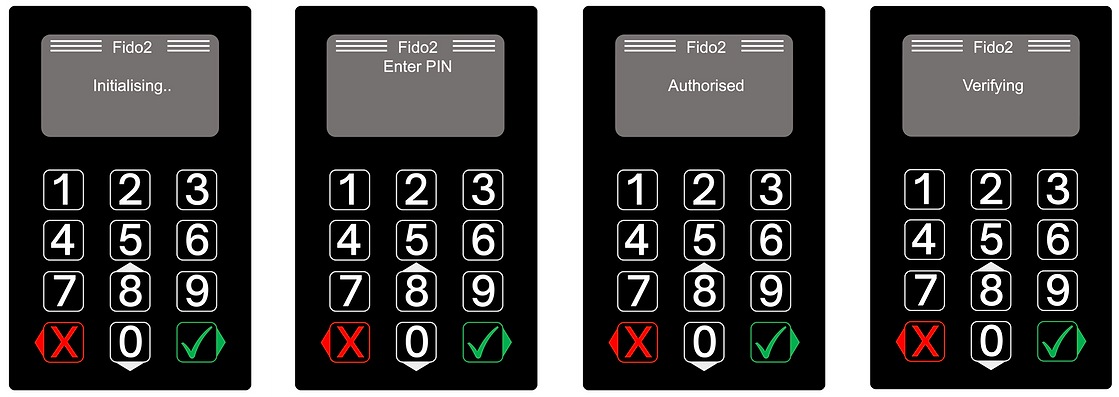 As VeroGuard adds PIN verification to FIDO, the VeroCard will initially display Initializing and then changes the display to Enter PIN.